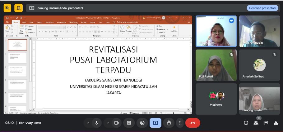 Pusat Laboratorium Terpadu FST UIN Syarif Hidayatullah Jakarta melakukan Diskusi Perdana melalui Daring pada Jumat 14/02/2025 kepada seluruh staf pranata laboratorium. Tema perdana Diskusi adalah Revitalisasi Pusat Laboratorium Terpadu yang disampaikan oleh Kepala Pusat Laboratorium Terpadu Dr. Iwan Aminudin, S.Hut.,M.Si.