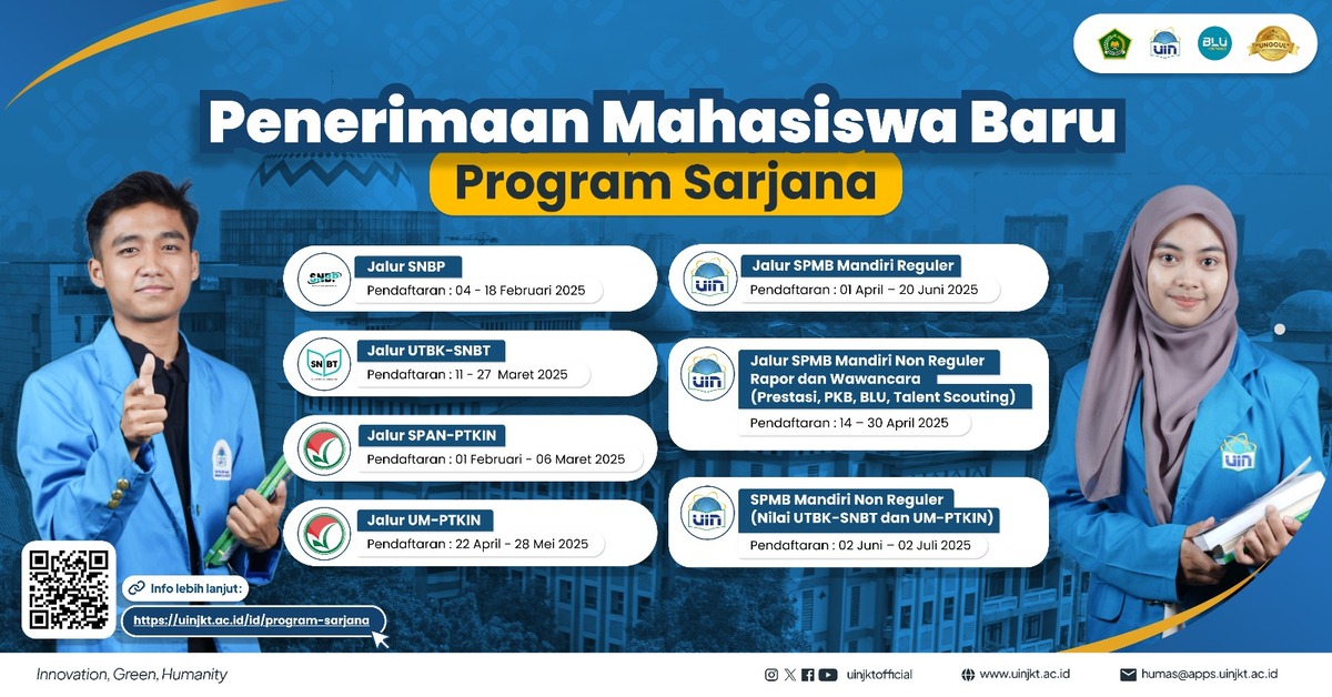 PLT-08/07/2025 - Seleksi Penerimaan Mahasiswa Baru Jalur Mandiri atau SPMB Mandiri merupakan mekanisme penerimaan mahasiswa baru yang diselenggarakan oleh UIN Syarif Hidayatullah Jakarta melalui berbagai bentuk seleksi, seperti ujian tulis berbasis komputer (SSE), wawancara, nilai rapor, portofolio prestasi, serta UTBK-SNBT dan UM-PTKIN 2025.